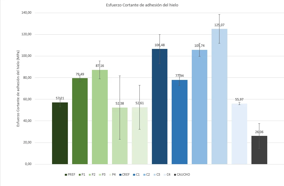 Los resultados mostraron que los recubrimientos de tipo P ofrecieron menor esfuerzo cortante, pero con alta dispersión. En cambio, los de tipo C fueron más consistentes. Destacaron especialmente C1 y C4 por su bajo esfuerzo cortante y buena repetibilidad.