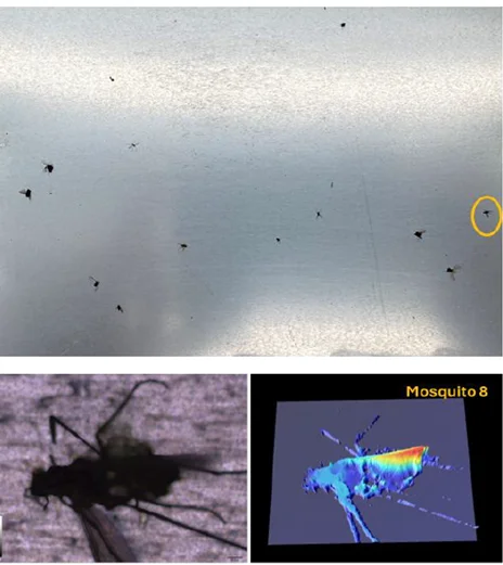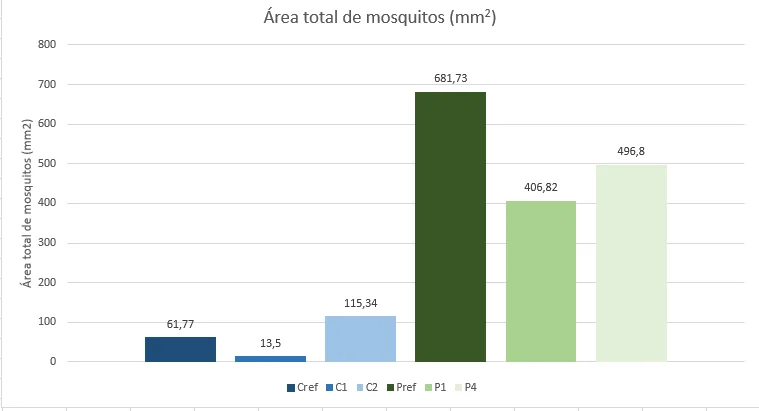 Esos 4 recubrimientos fueron contaminados con impacto de insectos en un recorrido mayor que en la fase anterior. Luego, se llevó a cabo su inspección para conocer el % de área total de los insectos y la altura de estos en cada probeta. De nuevo, los recubrimientos P presentaron mayor área de mosquitos que los recubrimientos tipo C y entre estos últimos destacó el C1 cuya reducción de área total contaminada con mosquitos fue de un 78% respecto a su referencia.